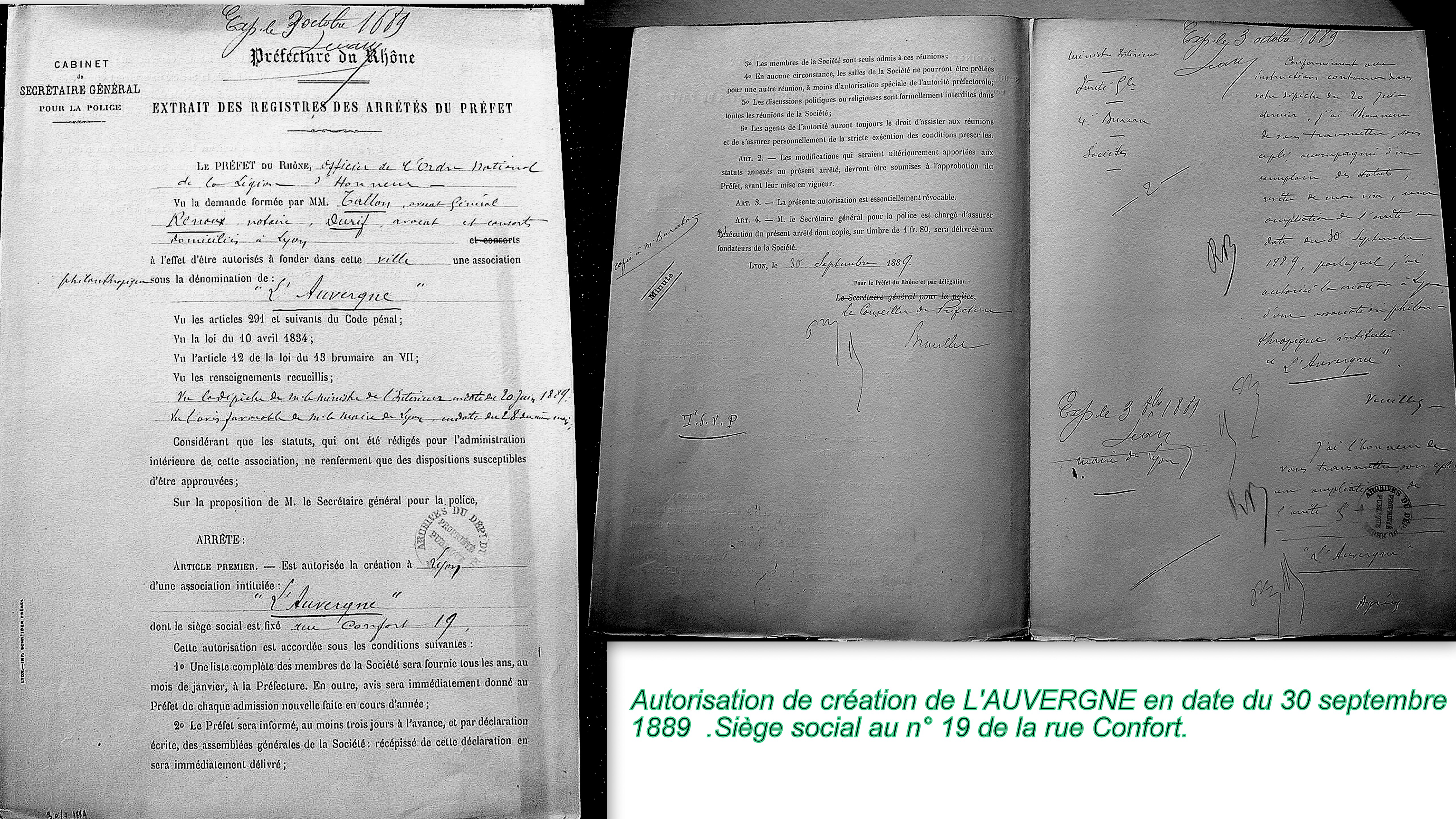 AUVERGNE DE LYON PREFET 30 SEPTEMBRE 1889