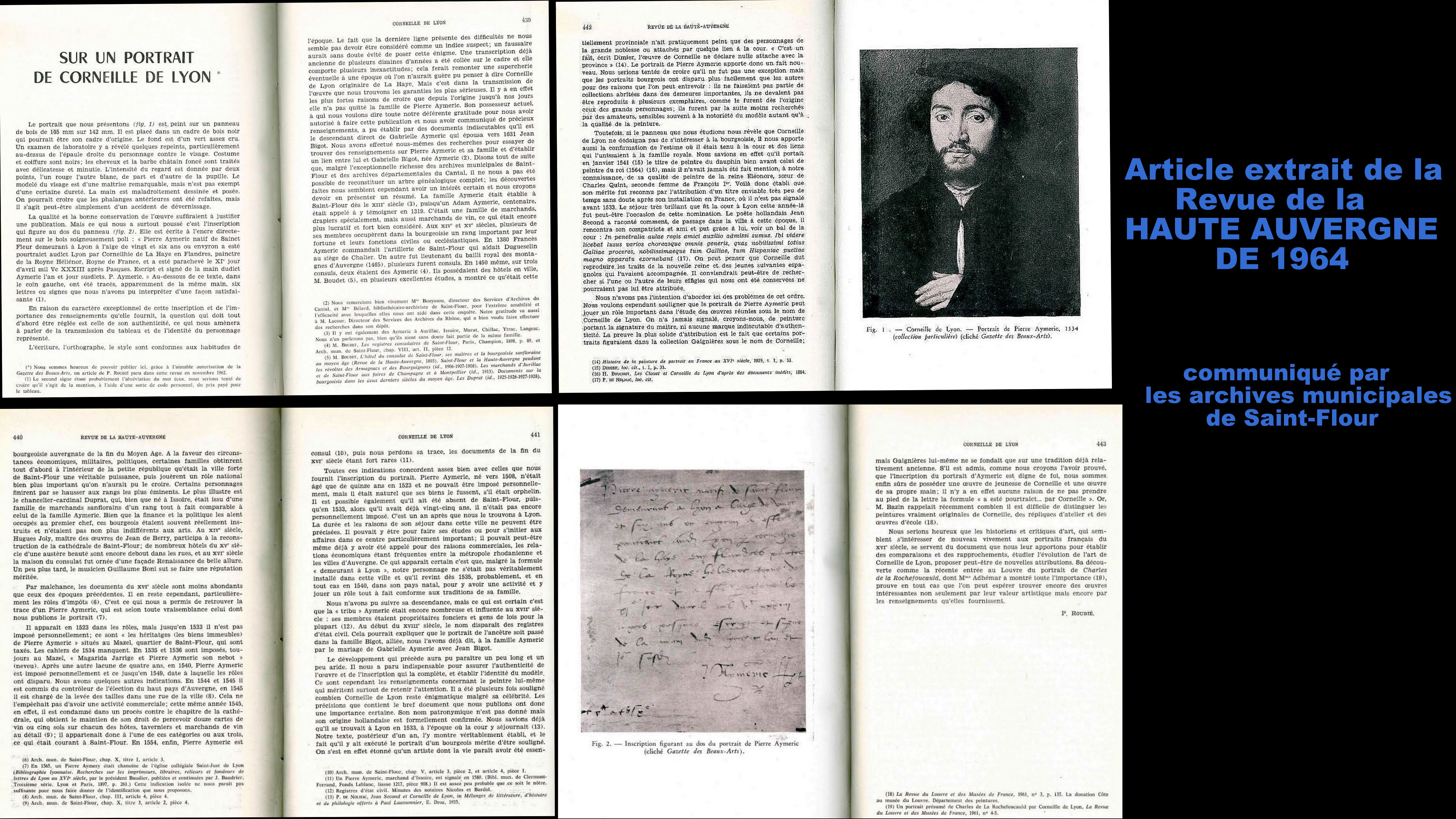 L’un de nos amis d‘Auvergne de Lyon visitant dernièrement au Musée des Beaux Arts de Lyon une exposition – maintenant terminée – où figuraient des portraits peints par un certain Corneille de Lyon , est tombé en arrêt devant le portrait -datant de 1534 – d’un certain Pierre Aymeric , marchand natif de Saint-Flour et consul de Lyon